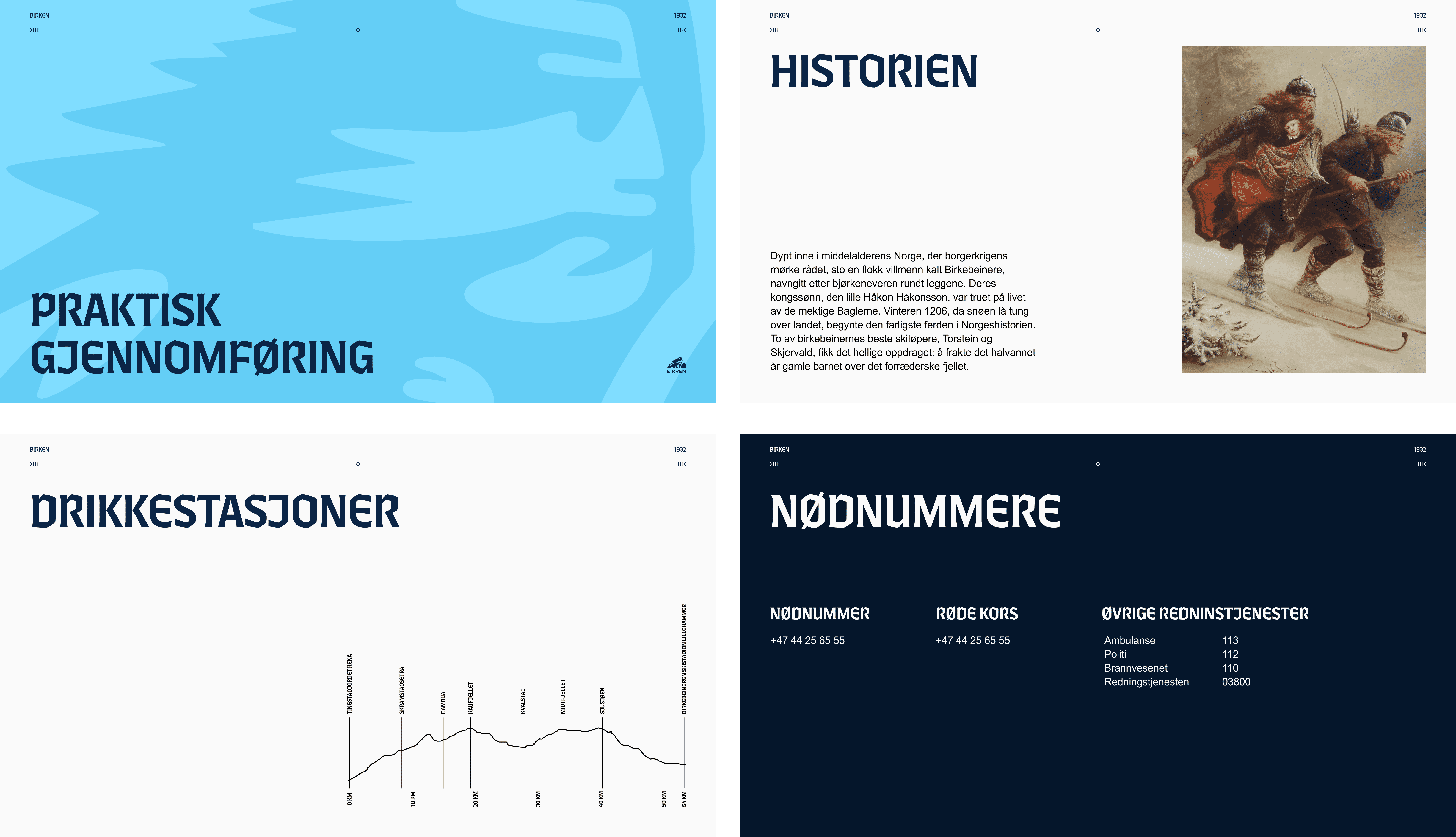 Oppdraget handlet ikke om å redefinere Birken, men om å rydde, samle og forsterke. Utfordringen lå i å skape et visuelt system som gir en tydelig sammenheng mellom de ulike grenene, og som fungerer like godt på en værhard Skramstadsetra som i digitale flater. Ved å ta utgangspunkt i Birkens egenart, det ekte, det folkelige og det prestasjonsnære, har vi utviklet en identitet som ivaretar den rike arven, samtidig som den føles universell og tidsriktig for nye målgrupper.
